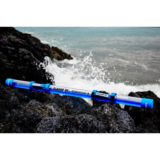 Die Slashpipe Mini „Robinson Edition“ unterscheidet sich zu der Slashpipe “Mini” lediglich in den Farben. Die „Robinson Edition“ ist komplett in Blau gehalten. Bei der „Mini“ hingegen kann zwischen den Farben Orange und Blau gewählt werden. Zudem sind die Haltegriffe und die Endkappen schwarz. Die mit Wasser gefüllte 120 cm lange Röhre liegt, dank der Handschlaufen, perfekt in der Hand. Nach dem Fitness-Training lässt sie sich platzsparend hochkant verstauen.