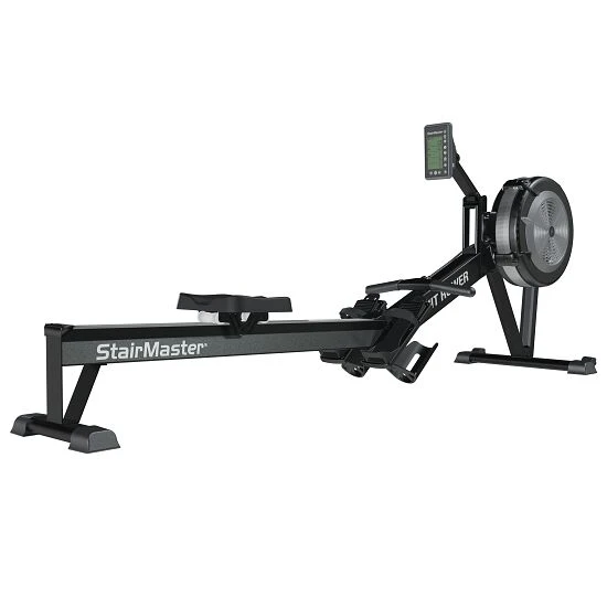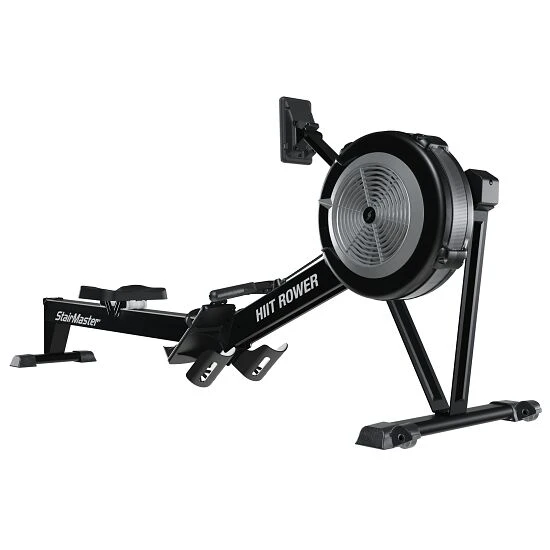 Der StairMaster HIIT Rower besteht aus einem äußerst robusten Stahlrahmen, der für einen festen Stand bei gleichzeitig größtmöglicher Sicherheit beim Training sorgt. Es zeichnet sich durch einen ruhigen, gleichmäßigen und leisen Lauf aus und ist speziell für die Dauerbeanspruchung konzipiert. Dank der 2 Transportrollen an der Vorderseite können Sie das Rudergerät schnell und bequem umstellen und verstauen. Dank der Bluetooth- und ANT+-Kompatibilität können Sie Ihre Trainings- und Leistungsdaten in Echtzeit an Ihr Smart Device oder Group Display schicken und so Ihre Leistungen aufzeichnen, analysieren und sich live mit anderen Athleten messen. Grundsätzlich bieten Rudergeräte eine attraktive Kombination aus HIIT-, Ausdauer-, Kraftausdauer- und Ganzkörper-Workout, das die HerzfrequenzDie Herzfrequenz (HF) oder auch Herzschlag-Frequenz ist die Anzahl der Herzschläge pro Minute. Sie ist abhängig von der Belastung, vom Alter und der körperlichen Fitness.Bei einem gesunden Menschen liegt diese Frequenz im Ruhezustand bei 50 bis 100 bpm (beats per minute). schnell in die Höhe schießen lässt und viele Kalorien verbrennen kann. Dank des Lüfterdämpfungssystems ist zudem eine Belastungssteigerung oder -verringerung bei einer vorgegebenen Züge-Anzahl möglich.